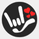 Pegatina Redonda ASL Te Amo Rótulo ILY Con Corazones Clásicos