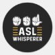 Pegatina Redonda ASL Whisperer. Lenguaje de Rótulo de mano de sensi
