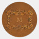 Pegatina Redonda Aspecto de cuero con monograma de personalizable