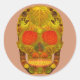 El cráneo inspirado en My Day of the Dead celebra la vida y la muerte con un collage de mis pinturas de hojas de álamos, con los colores del otoño pasado. ¡Empáñate, el invierno está llegando!