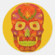 El cráneo inspirado en My Day of the Dead celebra la vida y la muerte con un collage de mis pinturas de hojas de álamos, con los rojos y amarillos de la caída.