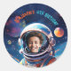 Need birthday party ideas for your boy? This spectacular photo birthday party personalized sticker for boys with an astronaut and space theme, featuring an illustration of an astronaut in deep space with a photo template on the visor, floating among planets, is just the ticket. Celebrate your budding astronaut with this planets and deep space theme that will make him happy, if he is crazy about all things planets, rockets, space and astronaut suits.