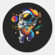 Pegatina Redonda Astronauta Jugando A Los Planetas Espaciales De Gu