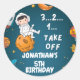 Pegatina Redonda Astronauta Planetas espaciales cumpleaños azul