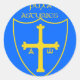 escudo de asturias en pegatina redonda, con lema "puxa asturies"