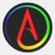 The Atheist Symbol represents logic, reason, rationality, critical thinking, freethought, and the non-religious. The rainbow colors represent respect and acceptance for human diversity and LGBTQIA+ people.