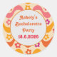 Esta es una etiqueta personalizada de fiesta de soltera floral retro groovy con flores retro muy lindas en olas groovy abstractas en rosa, naranja, amarillo y púrpura. Puedes cambiarla y hacerla tuya utilizando la plantilla personalizable.