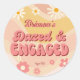 Aturdida y comprometida groovy retro margarita despedida de soltera fin de semana fiesta plantilla de stickers personalizados, rosa polvoriento retro margarita vibraciones groovy decoración de fiesta de despedida de soltera de fin de semana