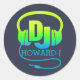 Pegatina Redonda audífonos DJ azul verde añada su propio nombre
