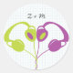 Pegatina Redonda Auriculares Indie Retro Boda del corazón (Púrpura/