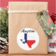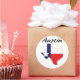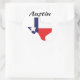 Este es un diseño para Austin Texas en forma de Texas con la bandera de Texas al fondo.