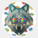 Pegatina Redonda Autism Awareness Wolf Puzzle Sungafas Autistic K