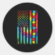 Pegatina Redonda Autismo Bandera Americana Tee Tie Dye Autism Aware
