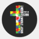 Pegatina Redonda Autismo Conciencia Jesús Cruzar el Rompecabezas Gu