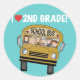 Pegatina Redonda Autobús escolar ama el segundo grado