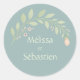 Pegatina Redonda Autocollant carte-retour mariage, cadeau floral