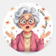 Pegatina Redonda Autocollant femme âgée heureuse recevant des lettr