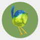 Pájaro dibujado a mano con una acuarela suave. Arte caprichoso de pájaros verdes y azules.