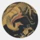 Pegatina Redonda Ave dorado de gallo clásico japonés antiguo