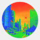 Pegatina Redonda Avenida Michigan de Chicago en noche de 1967 Neon