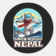 Pegatina Redonda Aventura con el Leopardo de la nieve en Nepal
