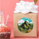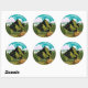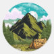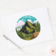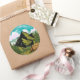 Pegatina Redonda Aventura, feliz camper vacaciones al aire libre