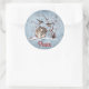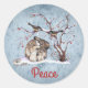 Pegatina Redonda Aves de nieve y conejo