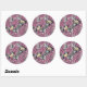 Pegatina Redonda Aves en un jardín de lilas rosadas