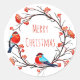 Pegatina Redonda Aves navideñas felices en una rama de Berry