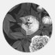 Pegatina Redonda Aves y flores de peonía monocromas, grises