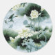 Pintura oriental suave de color verde a blanco con flores y pájaros.