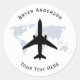 Pegatina de aviación con una imagen de avión en un mapa del mundo.