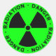 Peligro - Radiación - letras negras y símbolo de radiación con fondo verde brillante.
