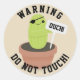 Ilustracion de un personaje de cactus lindo con un parche en el ojo. El texto dice: "¡Advertencia no toques!"