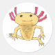 Un eje colorido dibujado a mano frente al espectador. Gallitas con la fachada roja brillante, ojos azules, cuerpo amarillo - atrapadas en medio de un intento de baño. Una imagen divertida para los fans de axolotl y de hecho - los fans de los axolotls.
