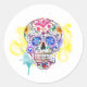 Pegatina Redonda Azúcar Skull Watercolor Art Cruz Familia Española