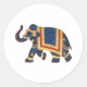 Pegatina Redonda azul blanco gris dorado rojo Elefante estilo India