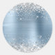 Pegatina Redonda Azul claro metálico con brillo plateado en blanco