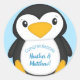 Pegatina Redonda Azul de Baby Shower pingüino