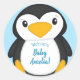 Pegatina Redonda Azul de Baby Shower pingüino