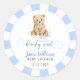 Teddy color azul dulce oso bebé ducha fiesta pegatina redondo.