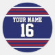 Pegatina Redonda Azul marino con franjas blancas de borgoña Jersey