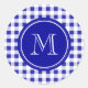 Pegatina Redonda Azul marino y Gingham blanco, tu monograma