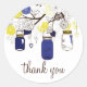 Pegatina Redonda Azul marino y mason jars amarillos gracias Pegatin