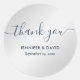 Elegantes etiquetas de agradecimiento personalizadas en azul marino y plata con una fuente de letra moderna. Artículos coincidentes disponibles.