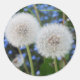 Pegatina Redonda azul, mariposa, planta, diente de león, pradera, b