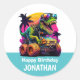 Pegatina Redonda AZUL MONSTER TRUCK DINOSAUR Fiesta de cumpleaños