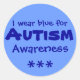 Pegatina azul redondo con fuente azul: "Uso el azul para la conciencia del autismo"