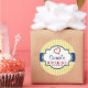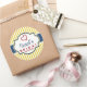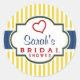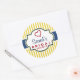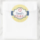 Pegatina Redonda Azul, rojo oscuro, rayas amarillas ducha de novia