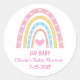 Pegatina Redonda Azul rosa amarillo boho arco iris Oh Baby Shower